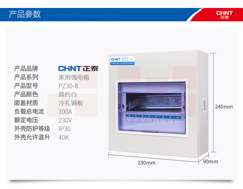 正泰(CHNT)PZ30-8 家用照明箱 明装 空开箱 断路器布线箱 8回路 1MM