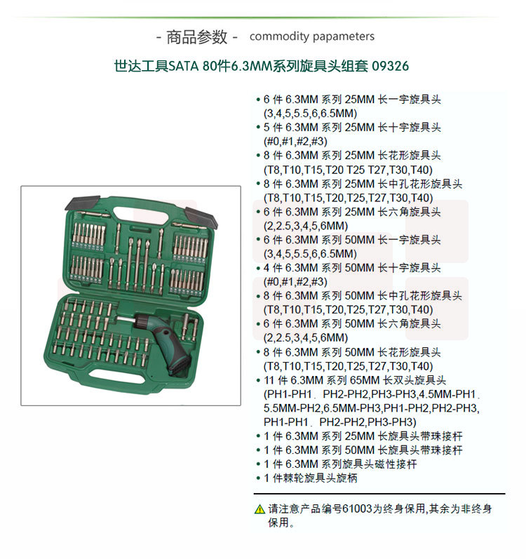 世达(SATA)80件6.3MM系列旋具头组套货号09326