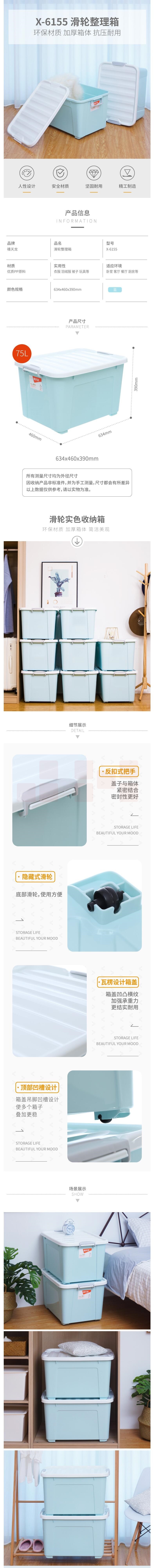 禧天龙 X-6155 大号收纳箱 75L 蓝色 货号:JC