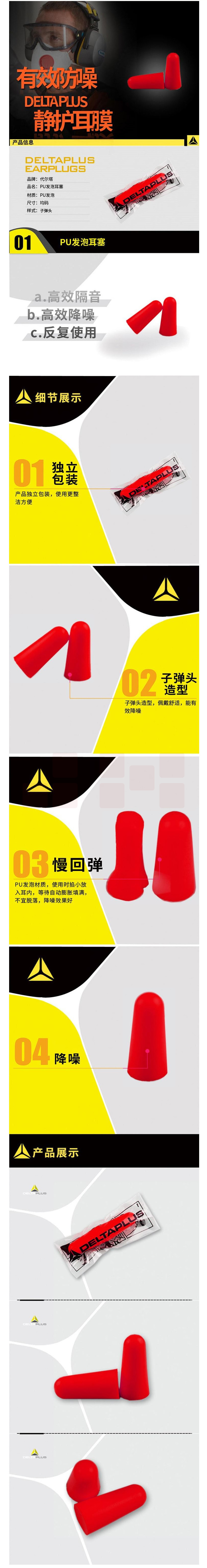 代尔塔 103105 不带线PU耳塞 CONIC200 红色 5盒/箱 耳部防护