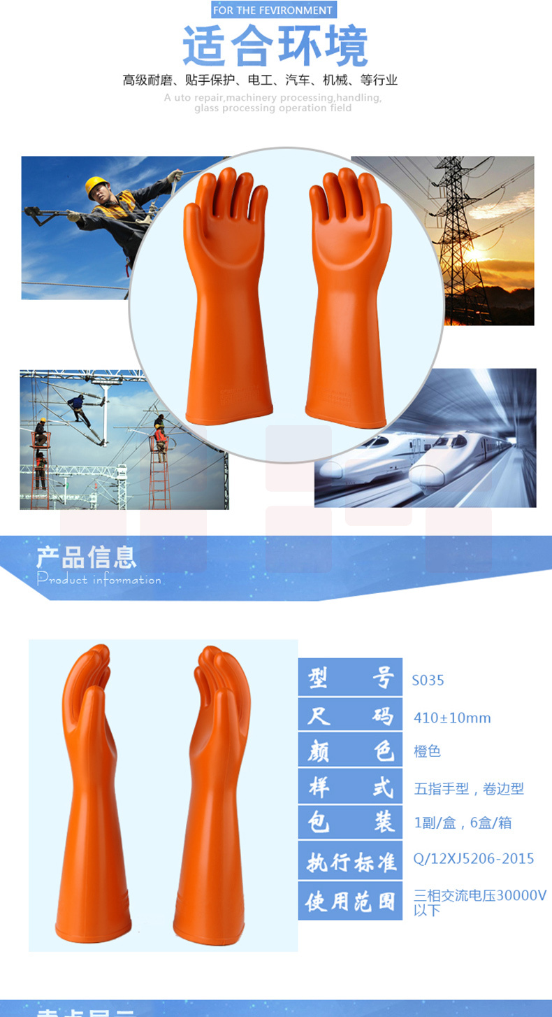 双安安全牌(ANQUAN)35kV 电工绝缘手套 高压防电 手套