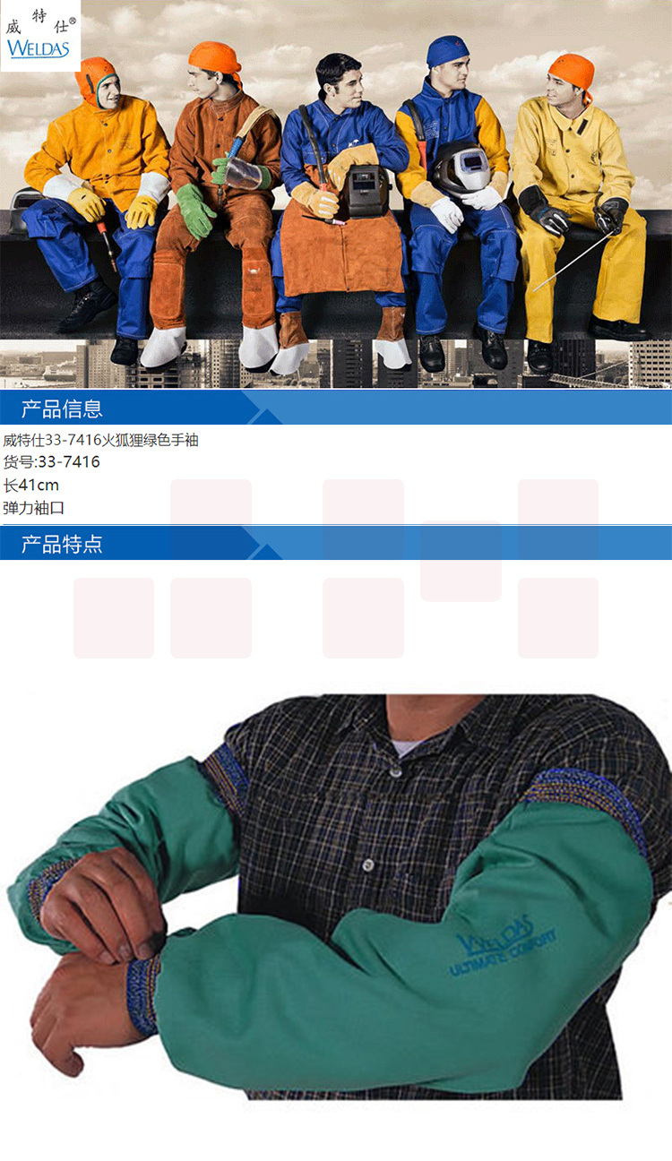 威特仕 / WELDAS 33-7416火狐狸绿色套袖电焊套袖手袖 41cm长耐磨阻燃棉套袖 1副