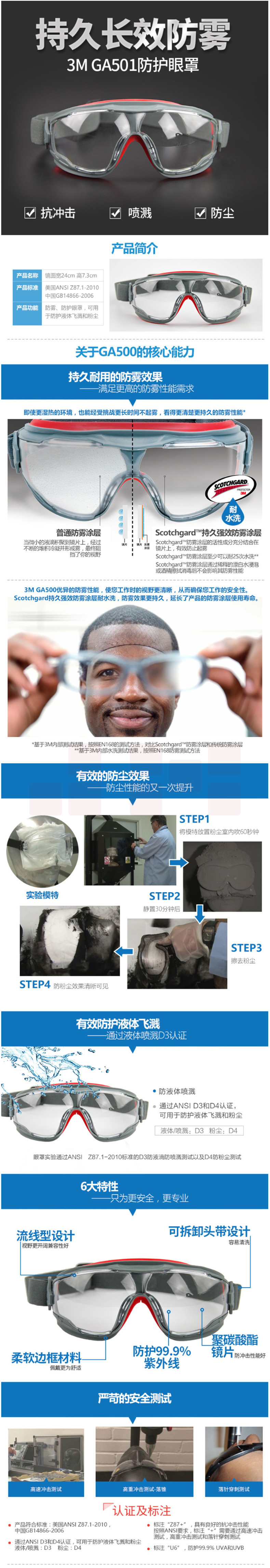 3M XM004871286 GA501 防雾防护眼罩 均码 10付/箱 透明镜片