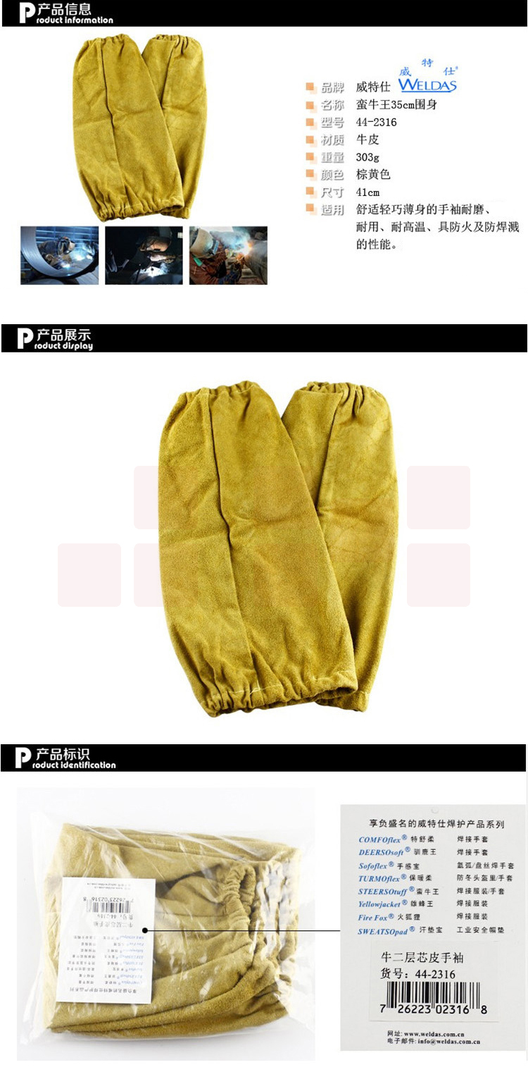 威特仕 / WELDAS 44-2316 牛皮电焊烧焊 套袖 41cm长防火隔热耐磨牛皮套袖 1副