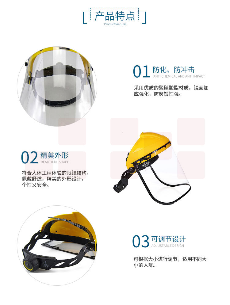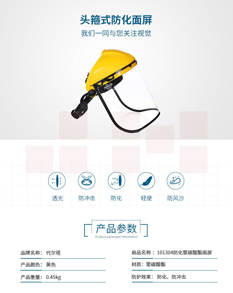 代尔塔 101304 防化防冲击聚碳酸酯面屏+支架 防颗粒物飞溅金属 厚度2mm