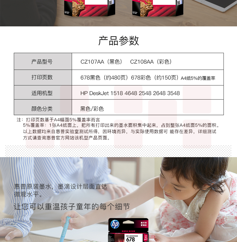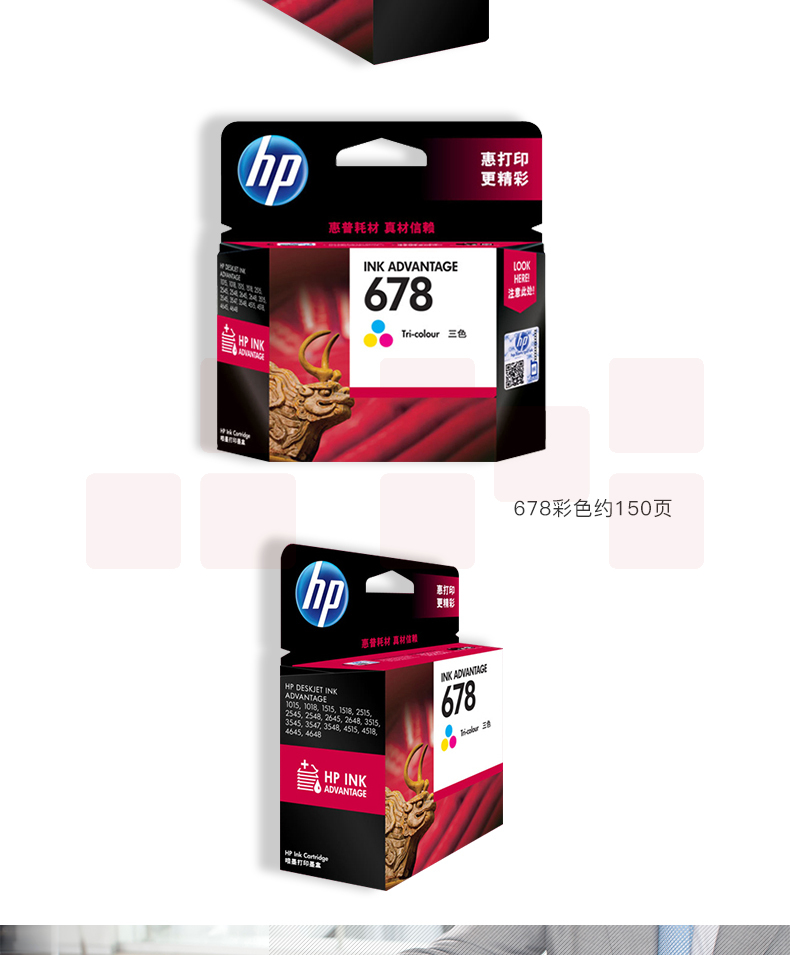 惠普 彩色墨水盒 CZ108AA 678(适用于HP Deskjet1018/2515/1518/4648/3515/2548/2648/3548/4518)
