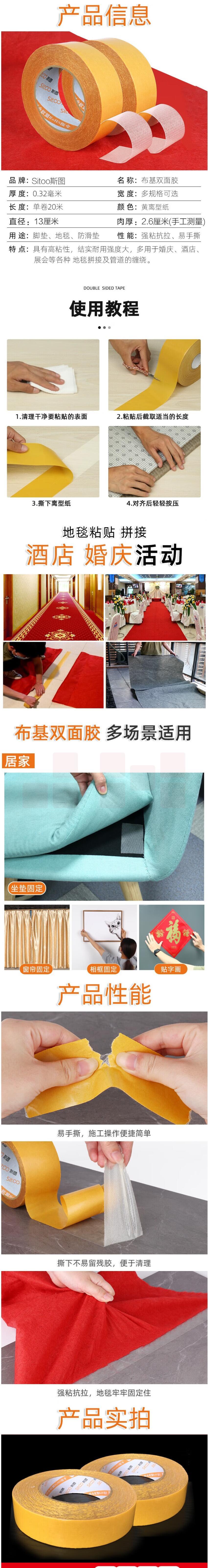 网格双面胶 强力双面布基胶带 黄色 20mm*20m 1卷 高粘无痕固定