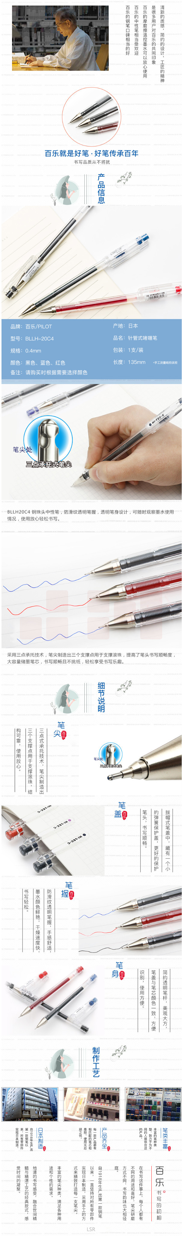 百乐 0.4mm针管式超细钢珠中性笔签字笔 BLLH-20C4 蓝色