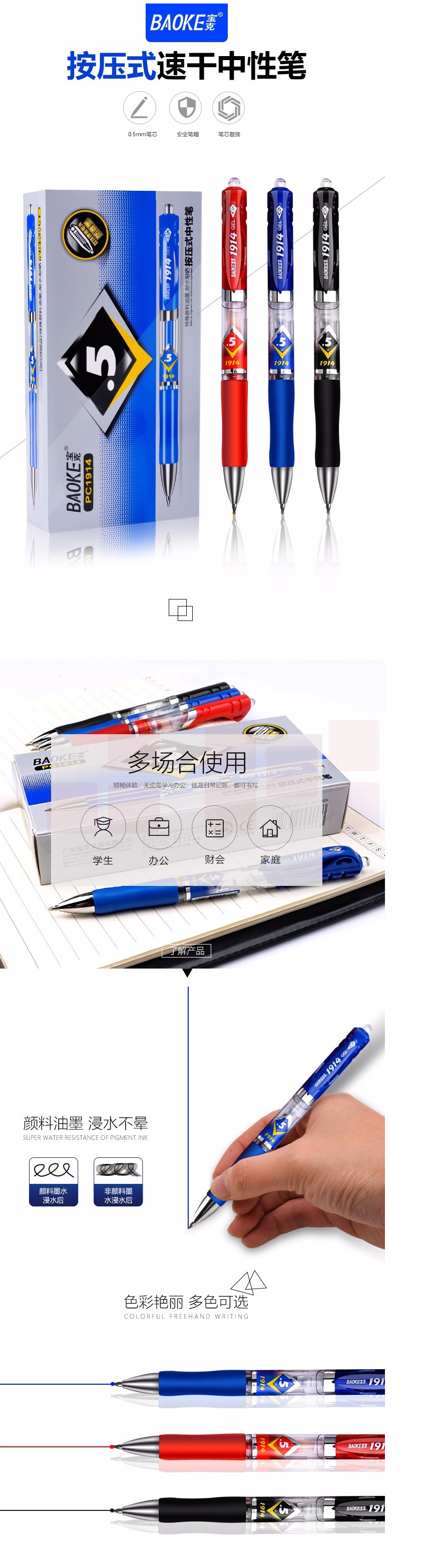 宝克 PC1914按动中性笔0.5mm签字笔水笔 黑色