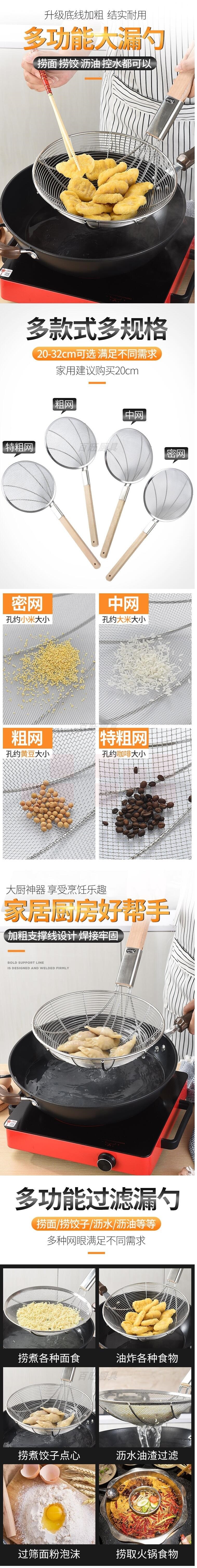 8目不锈钢过滤网大漏勺 不锈钢笊篱 直径28cm 手柄长约38cm