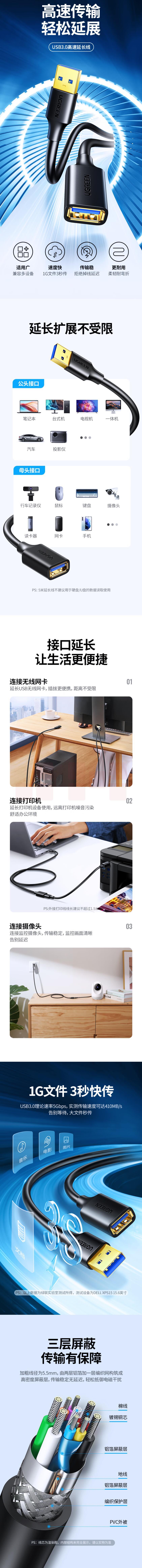 绿联 USB3.0延长线公对母 高速传输数据连接线 加长转接线10368