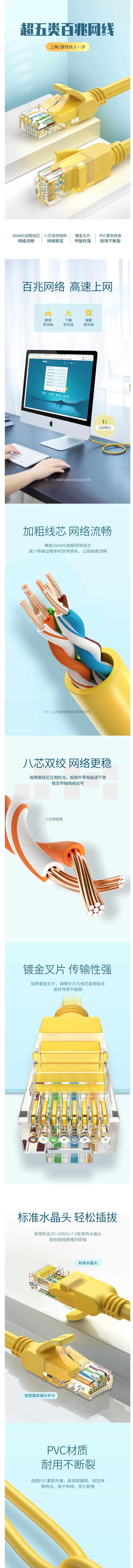 绿联 超五类网线 3米成品跳线八芯双绞线3米 11232