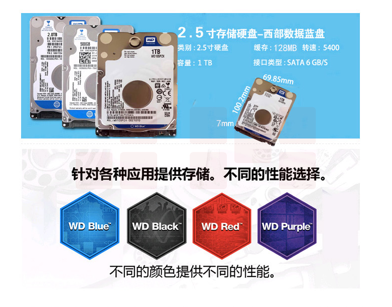 西部数据(WD) 笔记本机械硬盘 SATA3 6Gb/s 2.5英寸 蓝盘 2T WD20SPZX