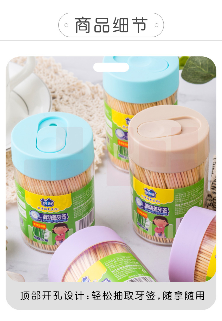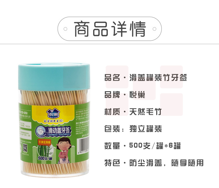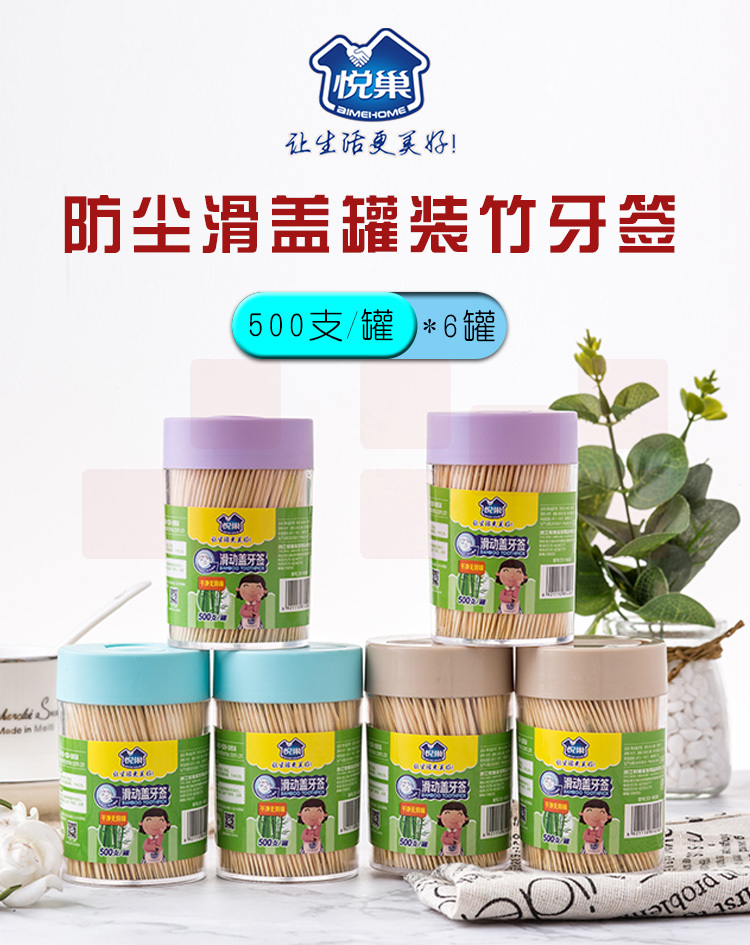悦巢竹牙签 防尘滑盖罐装牙签量贩装6*500支