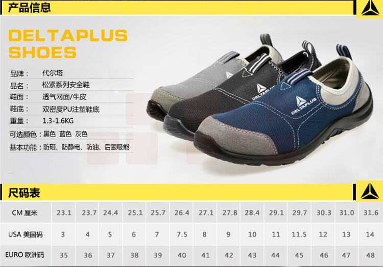 代尔塔 301217劳保鞋男女防砸防刺透气轻便工作鞋防静电安全鞋