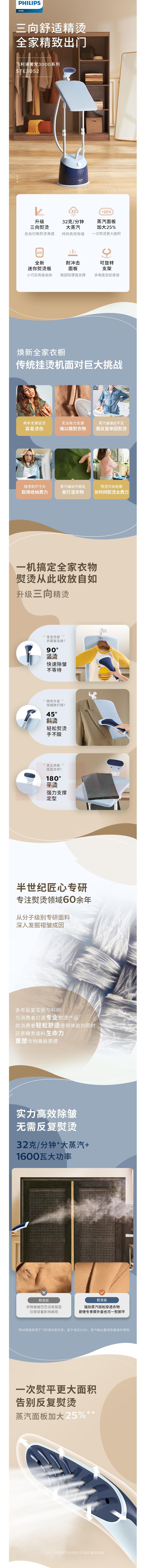 飞利浦 (PHILIPS)奢宠3000系列蒸汽挂烫机 家用立式熨烫机STE3052/28