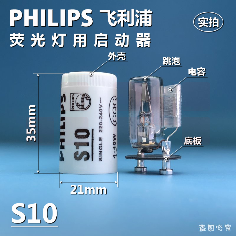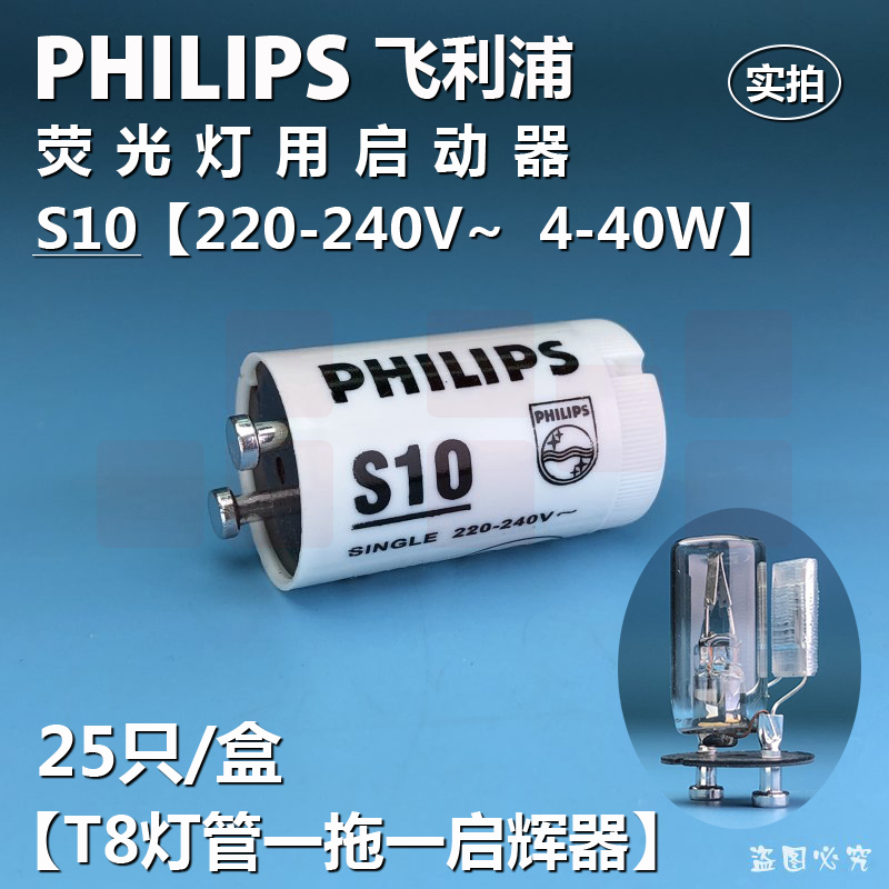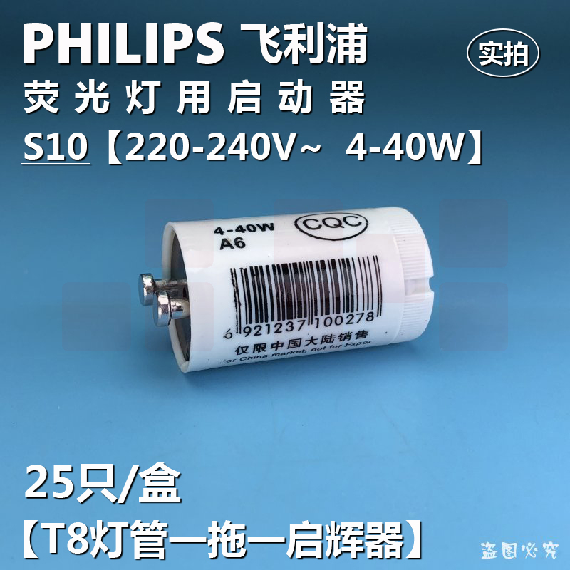 飞利浦荧光灯启动器 S10 4-40W球克(25只/盒)