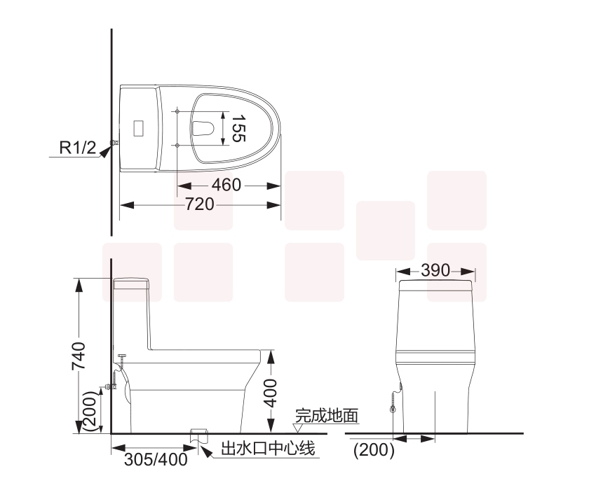 HDC6209A 超漩虹吸式连体坐便器 720×390×740mm 4/6 升双档节水型 UF 静音缓降盖板 坑距 305mm
