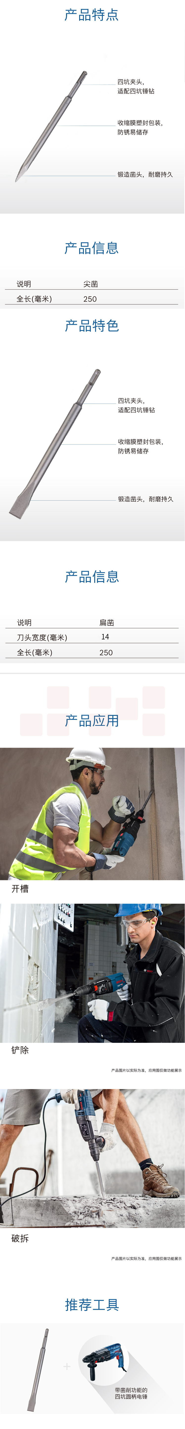 大地(DADI)14*250 扁 元四坑钢凿电锤镐尖镐钎凿子 扁头