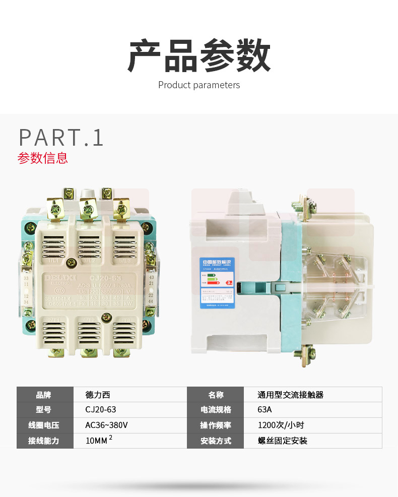 DELIXI/德力西CJ20-25A 220V交流接触器