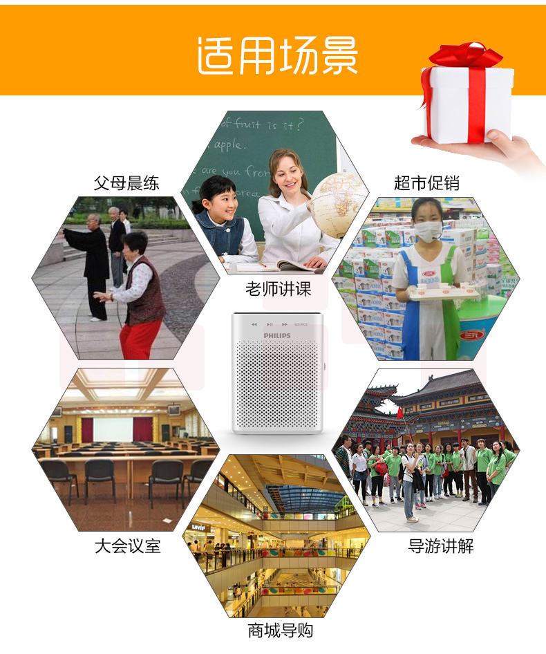 飞利浦(PHILIPS) SBM230无线便携广场音响插卡音箱 教师导游教学专用扩音器