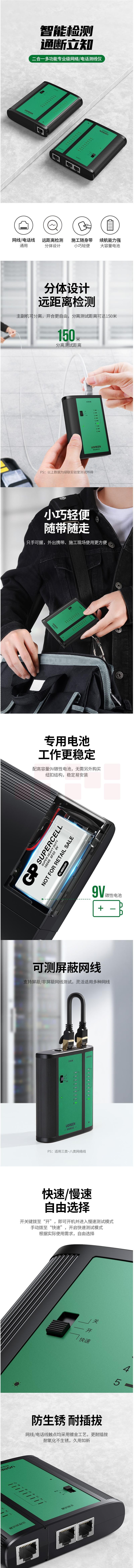 绿联 网线测试仪 网络水晶头电话线工程检测仪器 10950