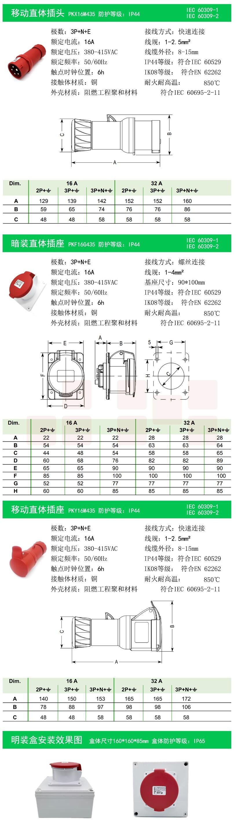 施耐德 直体工业插座一套 PKF16G435插头+PKF16G435插座+专用防水明装盒 货号:JC