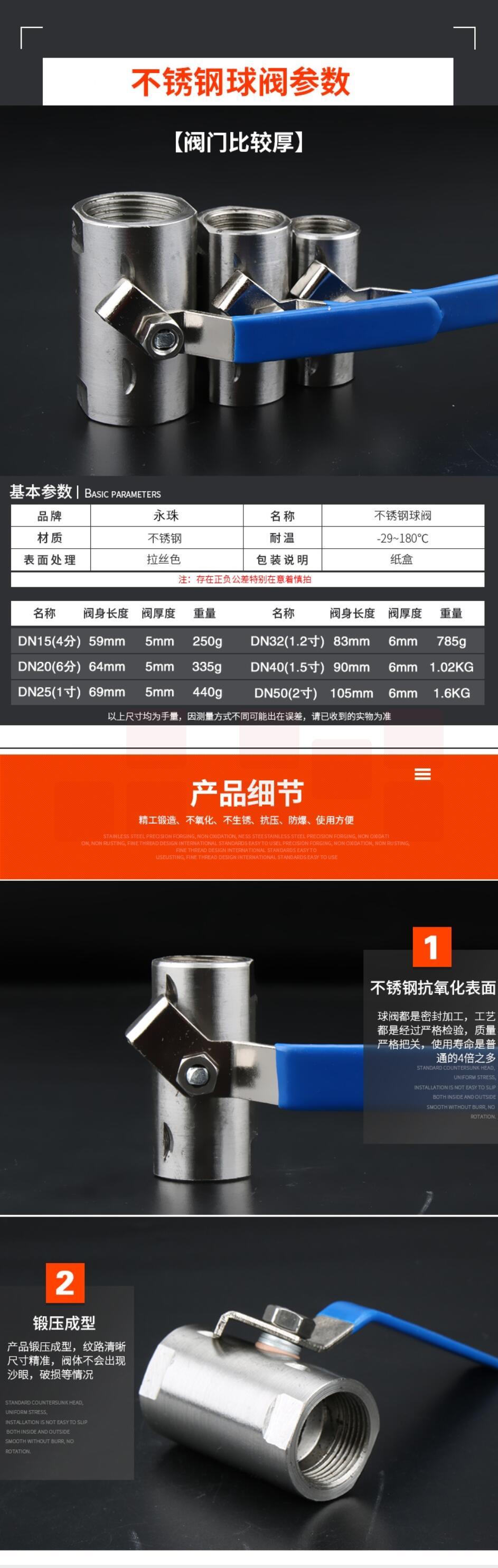 永珠DN50不锈钢球阀2寸不锈钢阀