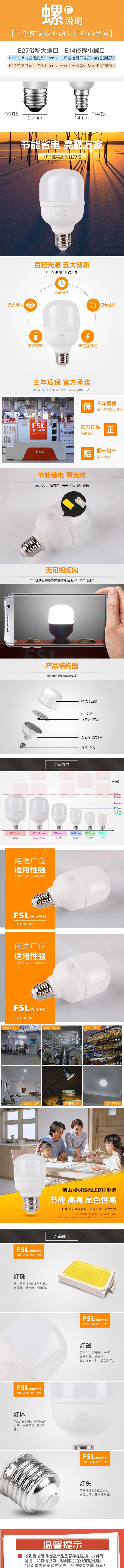 佛山照明 LED球泡 20W柱形亮霸灯泡 220V-E27-6500K白光