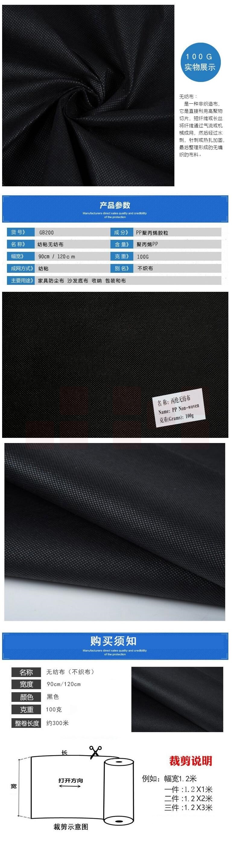 黑色无纺布 黑色布料加厚黑布 宽1.2m 40米/卷 货号:HXE