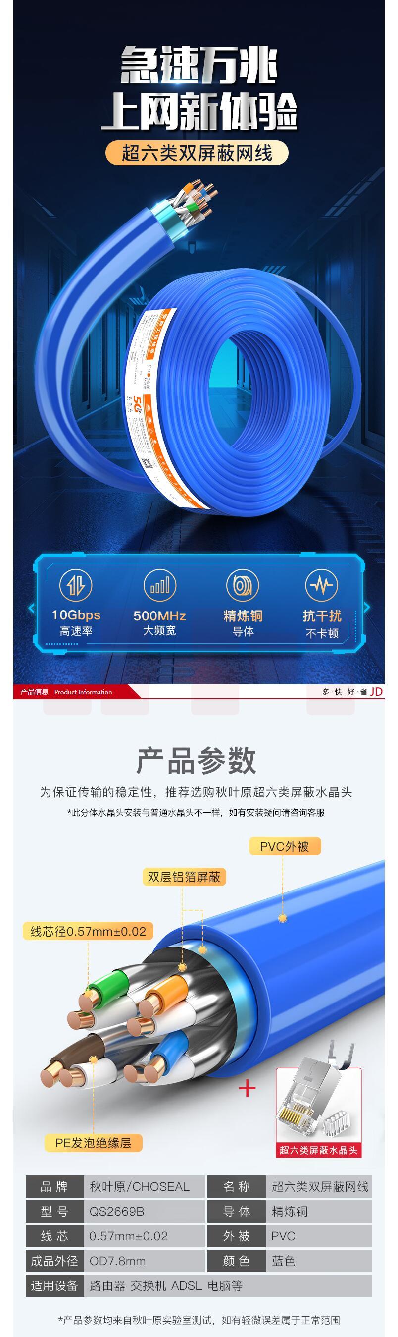 秋叶原 超六类双屏蔽网线 QS2669BT100S 货号:GD