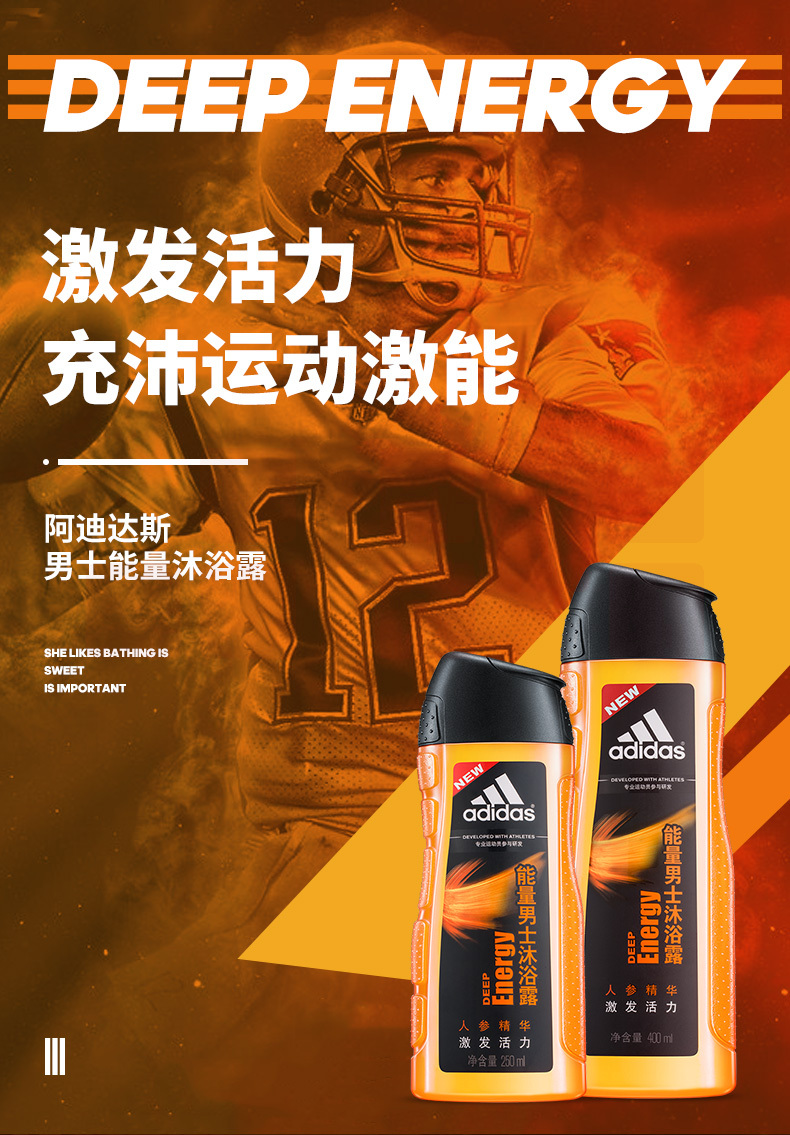 阿迪达斯 沐浴露250ml男士能量沐浴液 清凉舒爽长久留香