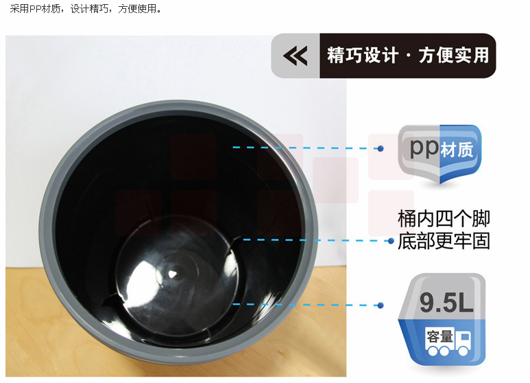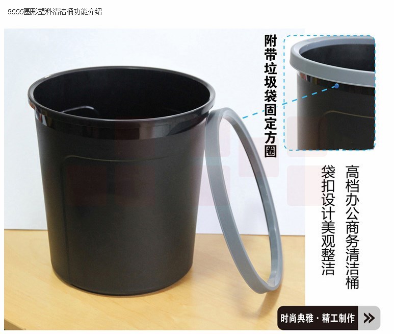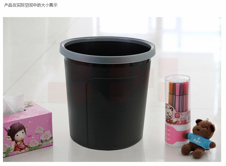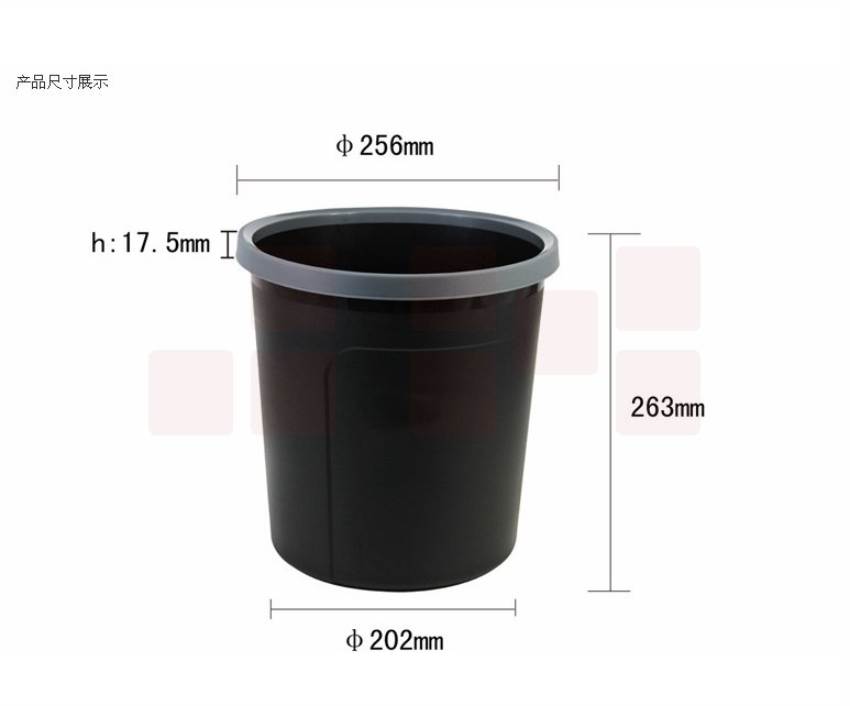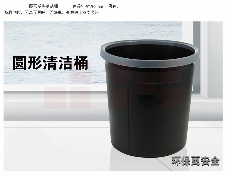 圆形压圈塑料加厚垃圾桶清洁桶(256*263mm) 废纸篓黑色