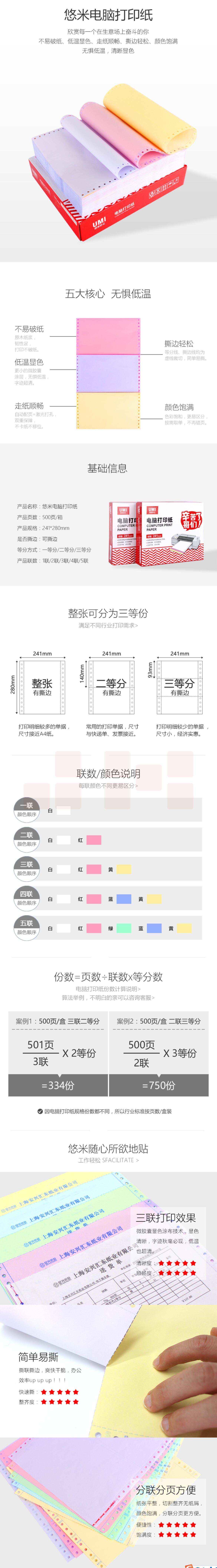 安兴悠米 241-2-1/3S 二联三等分 针式打印纸电脑打印纸1000页(可撕边)