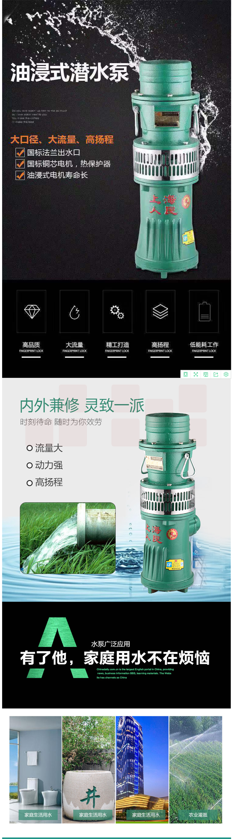 上海人民 QY8.4-40-2.2KW 1.5寸 380V 油浸污潜水泵