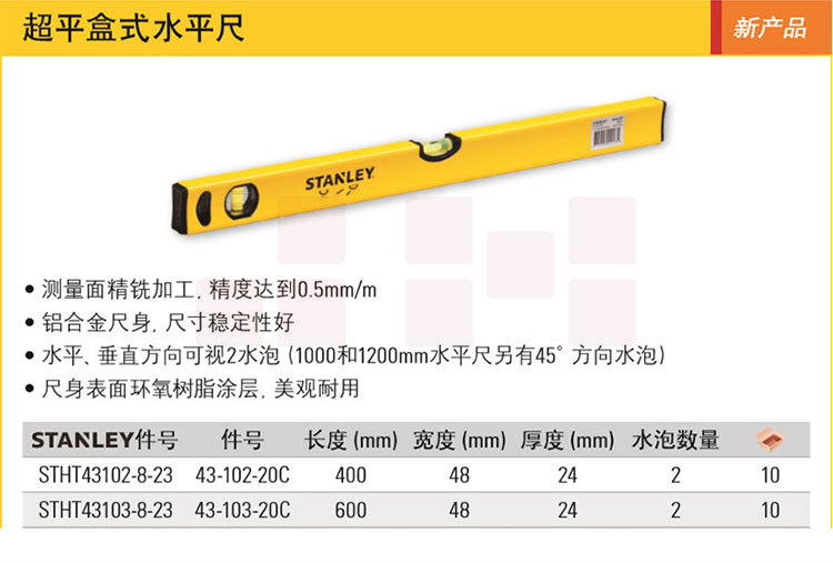 史丹利 超平盒式水平尺 43104-8-23