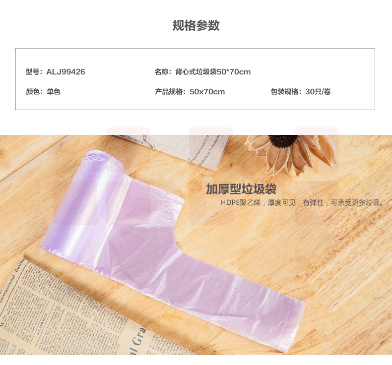 晨光50*70cm 背心式垃圾袋(30只/卷)ALJ99426