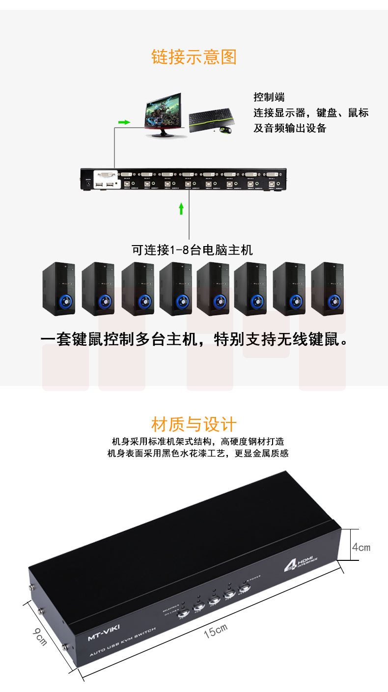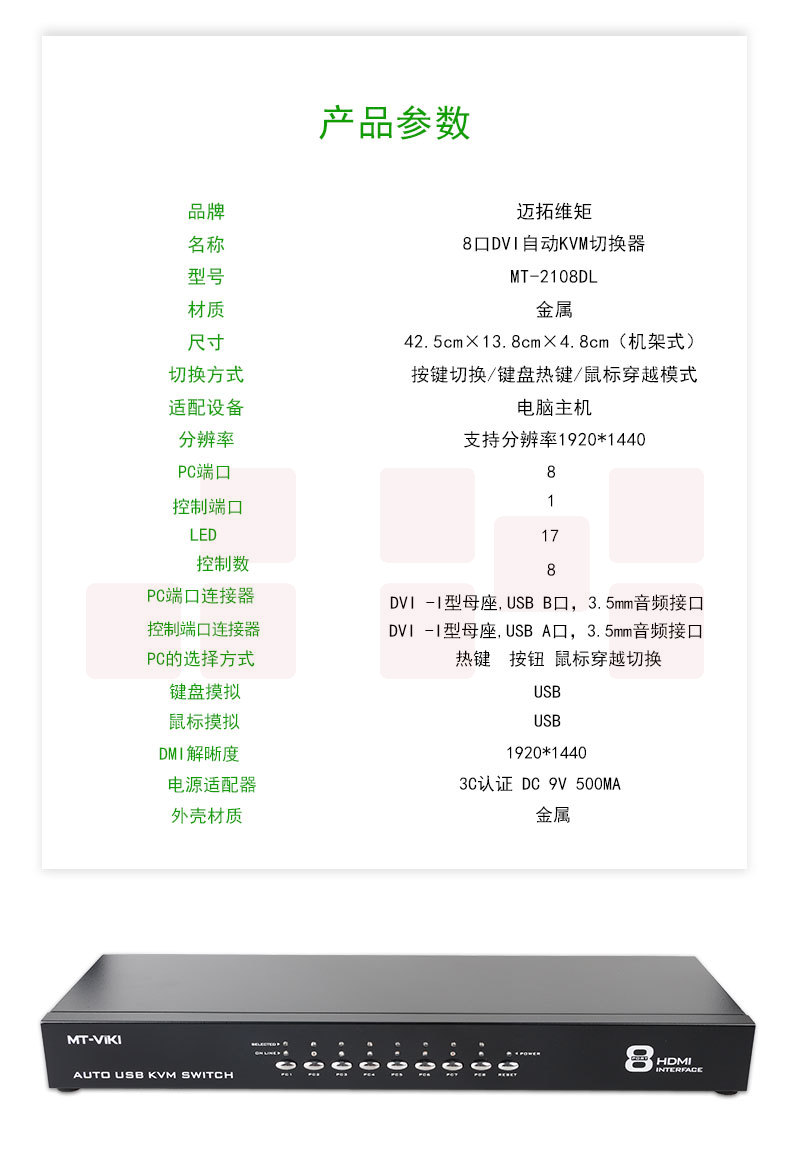 迈拓维矩MT-2108DL kvm切换器dvi 8口usb自动显示器多电脑切换8进1出