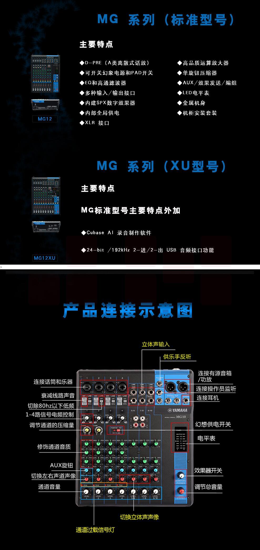 雅马哈(YAMAHA) 调音台多路控制带效果器 MG12调音台 12路 货号:LJ