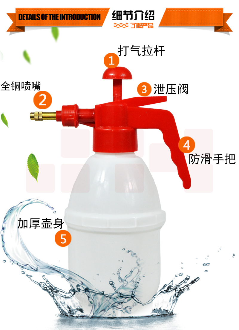浇花喷壶压力家庭园艺浇水壶 喷雾器洗车壶 2升