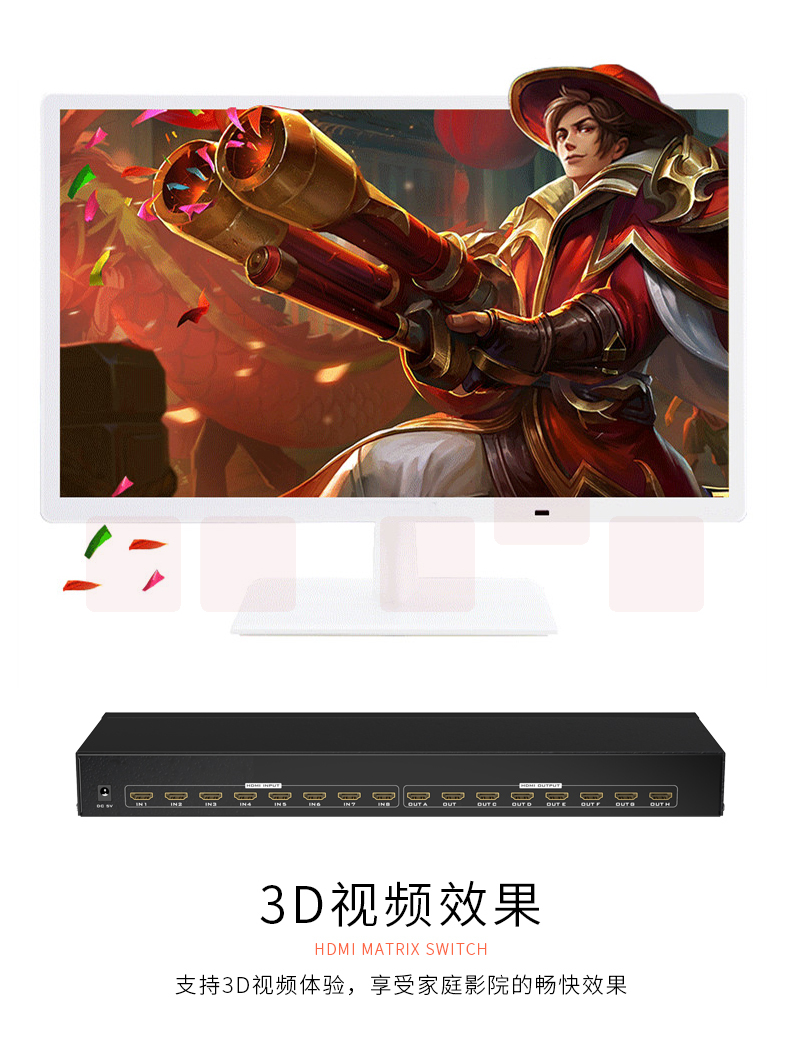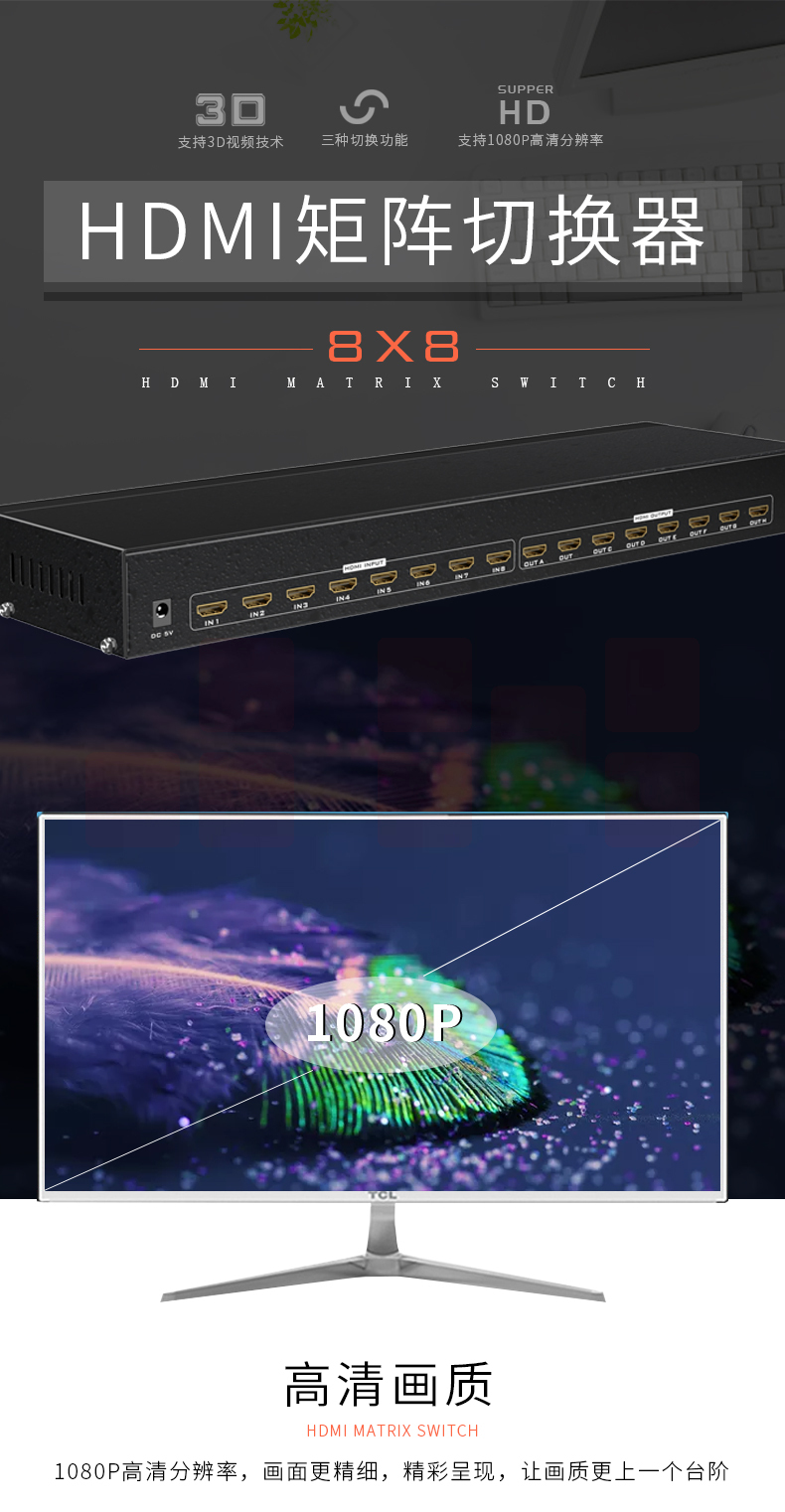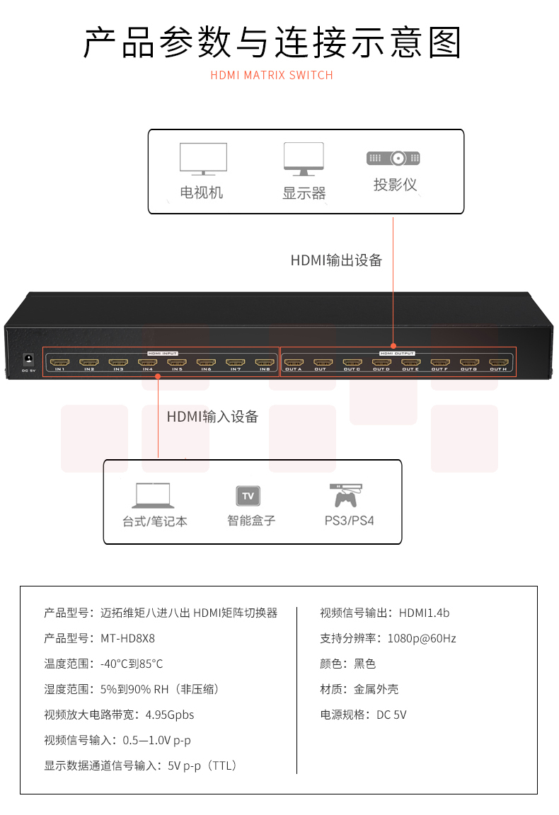 迈拓维矩(MT-viki) HD8X8 8进8出HDMI矩阵切换器分配器视频会议主机高清1080P