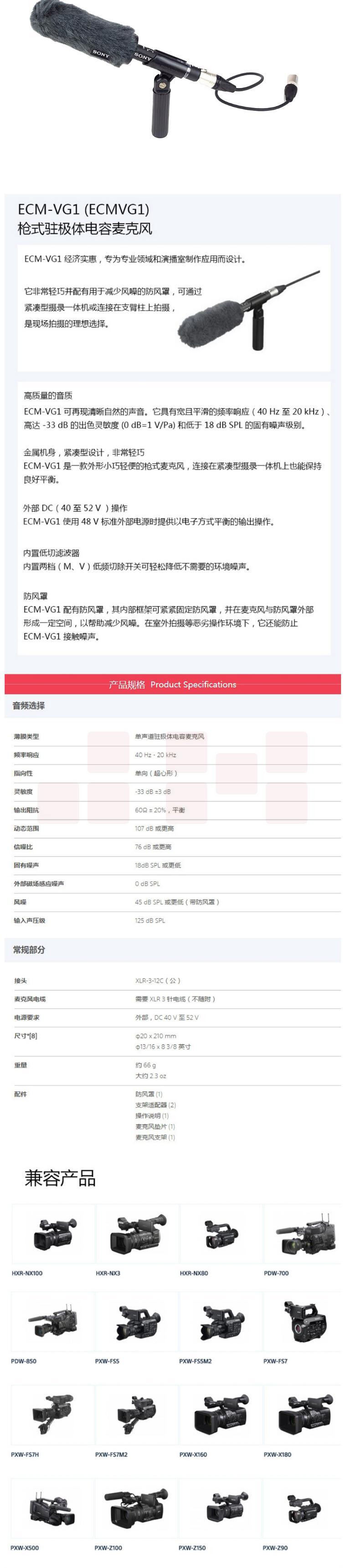 索尼(SONY)ECM-VG1枪式驻极体电容麦克风 话筒用于EX280 NX3 NX100