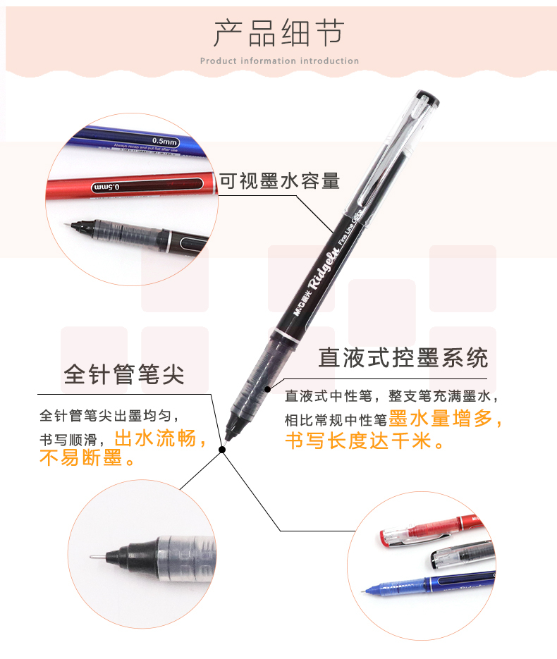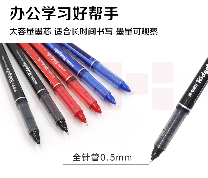 晨光(M&G)0.5mm红色直液式全针管中性笔签字笔水笔 12支/盒ARP41801C