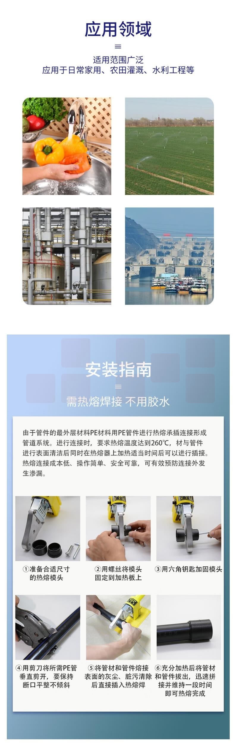 PE水管配件 等径弯头 热熔管承插接头 PE弯头63mm 货号:JC