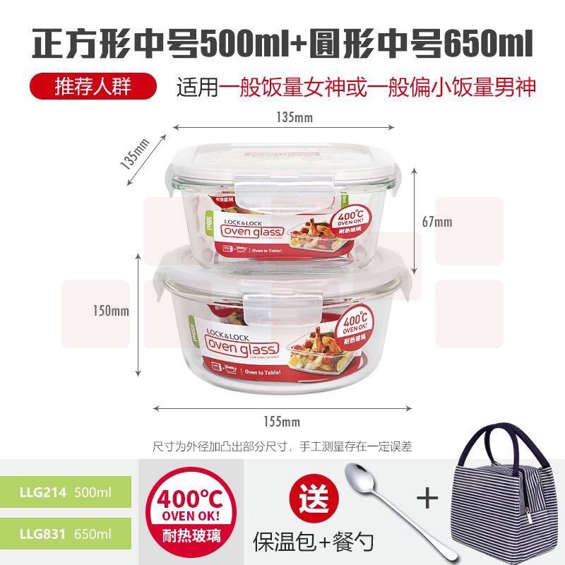 乐扣乐扣保鲜盒玻璃保鲜便当盒 500ml+650ml +保温包