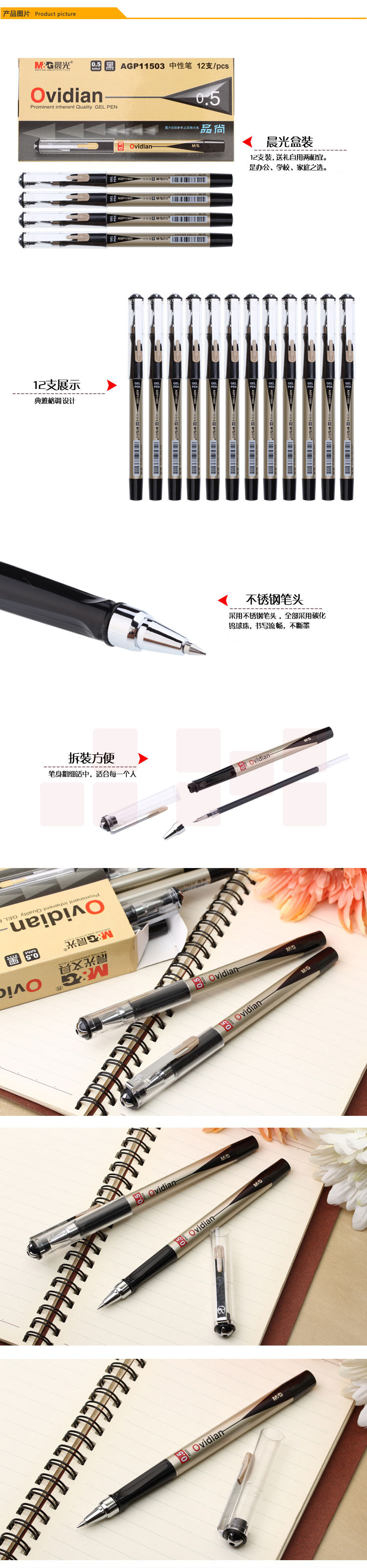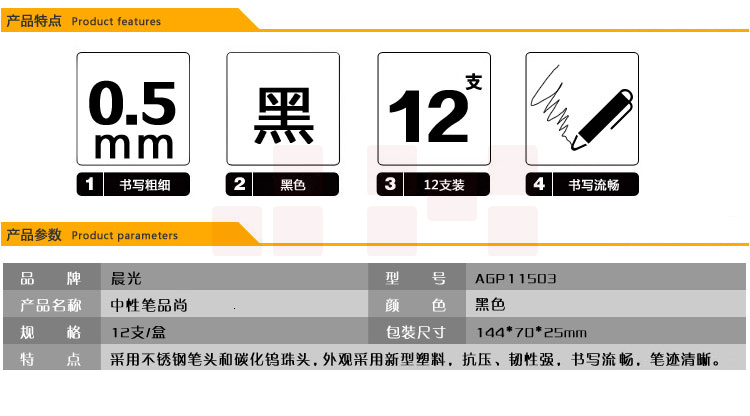 晨光0.5mm黑色中性笔 经典子弹头签字笔12支/盒AGP11503