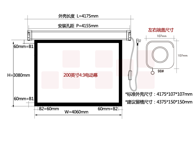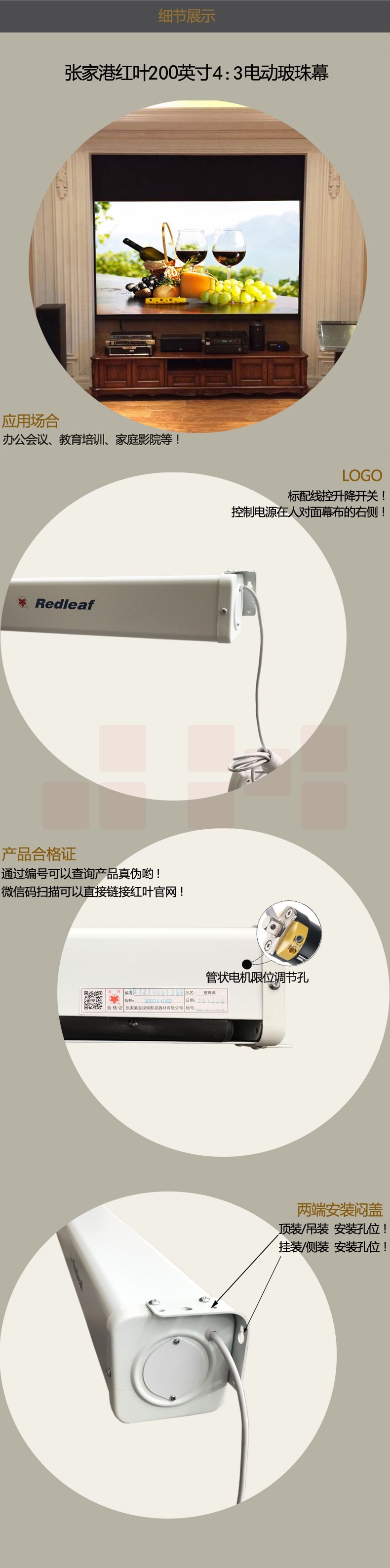 红叶(HONGYE)电动投影幕布200寸4:3白塑幕玻珠幕白玻纤高清幕布 4.06*3.05