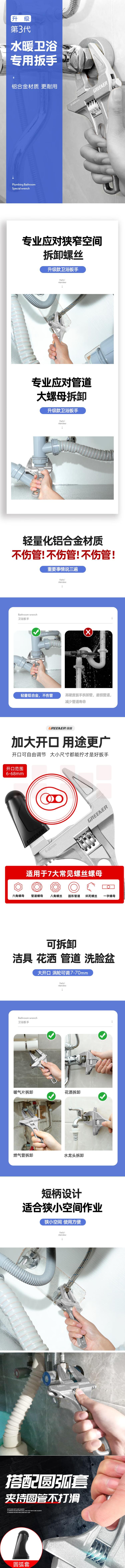 卫浴活动短柄扳手卫浴扳手 开口6-68mm 短把板子