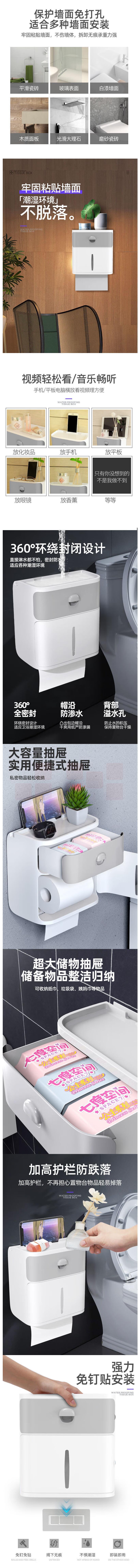 卫生间纸巾盒 免打孔收纳防水卫生纸抽纸卷纸 双层黑色 货号:JC