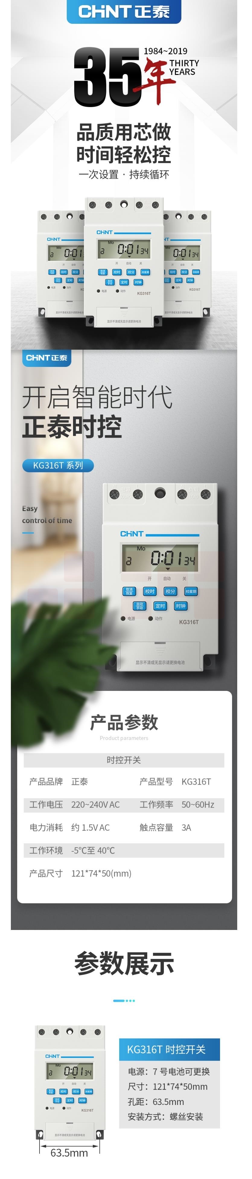 正泰(CHNT)KG316T 时控开关 定时器 定时开关 时间控制延时开关 货号:JC